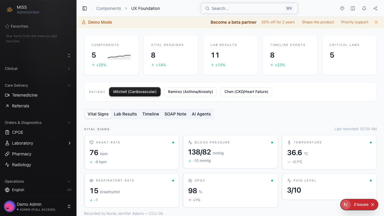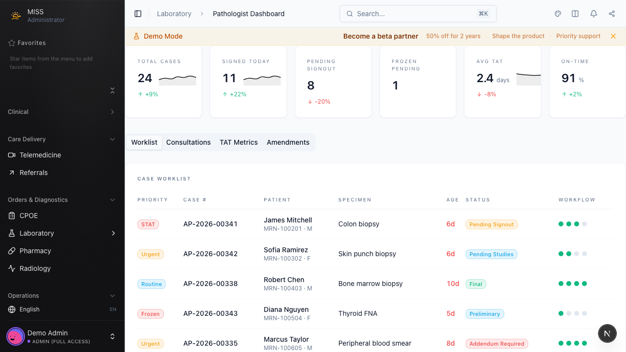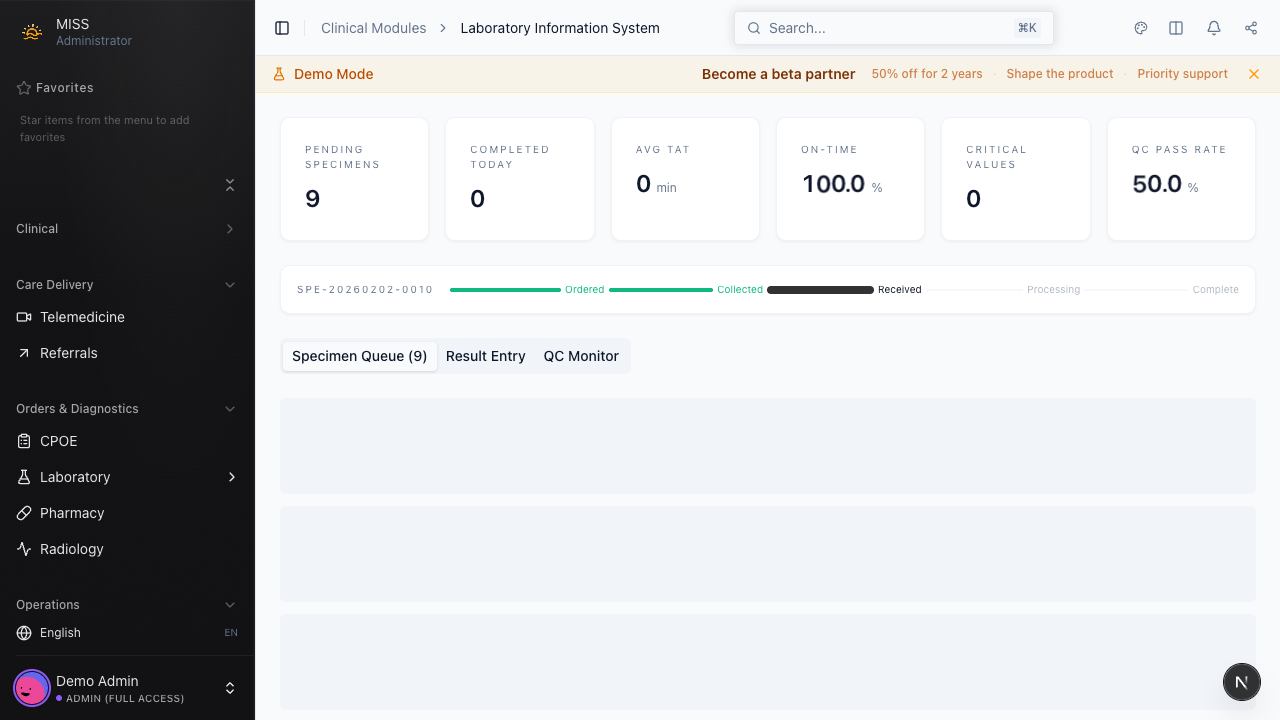 When the lab records a critical value → the system automatically notifies the doctor → updates the treatment plan → creates a bill → informs the patient. No manual data transfers between programs.
